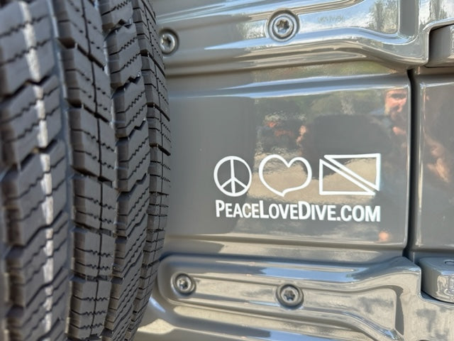 Take a little Peace, Love & Diving with you wherever you go! It's what we are all about. Why not drive in style!