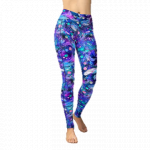 The new Spacefish Army leggings design features a Recycled Polyester blend made from repurposed single-use plastics that would otherwise end up in our landfills and oceans.