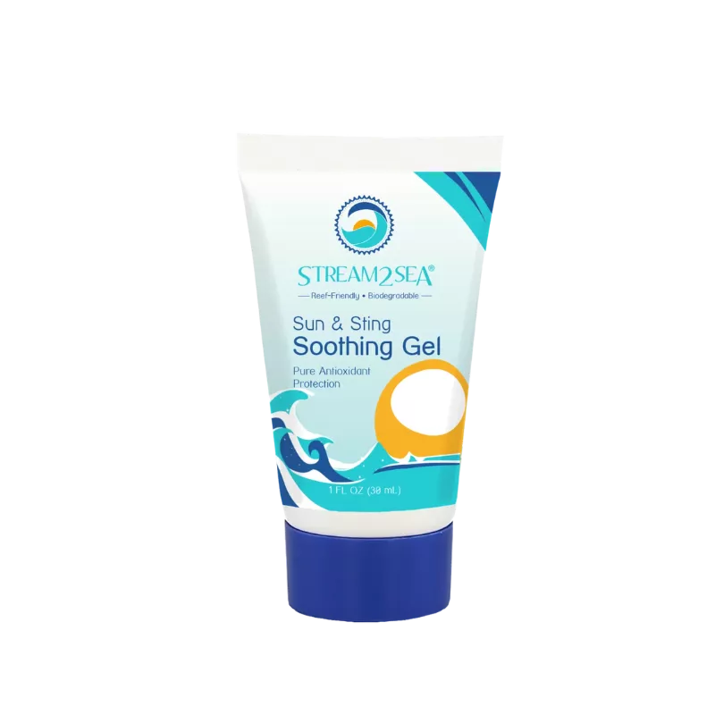 Soothe your skin following sun exposure, insect bites or underwater stings with Stream2Sea Sun and Sting Soothing Gel made with a potent antioxidant blend of Green Tea, Tulsi, Wakame, and Olive Leaf.